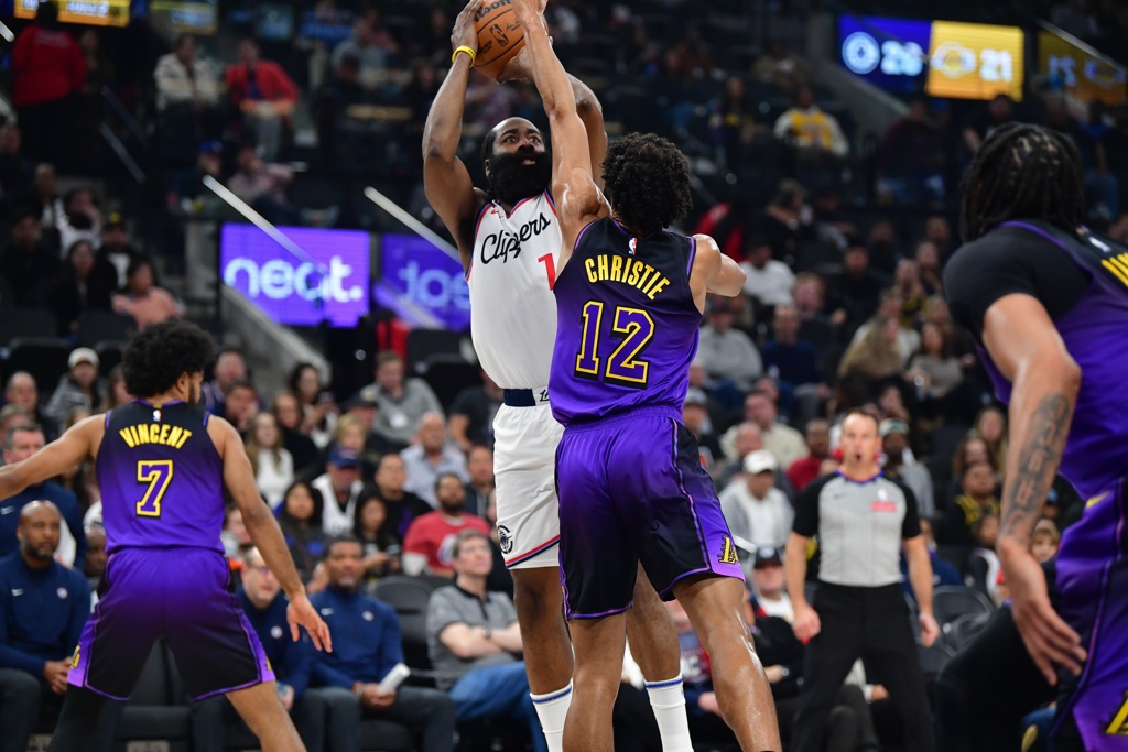 快船双核单挑爆破率先打停湖人,湖人首发组进攻没毛病,但里夫斯、克里斯蒂、八村塁三个点的单兵防守遇上卡子哥/哈登过于被动,一对一防守根本玩不了,湖人必须上夹击保护防守弱环。