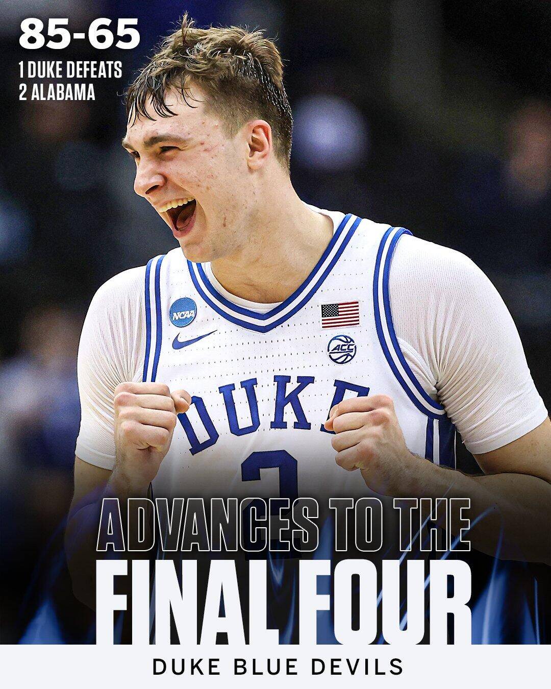 本场比赛杜克大学祭出窒息防守,彻底锁死了阿拉巴马大学头号得分手马克-西尔斯,后者在上场比赛中投进10个三分砍下34分。阿拉巴马大学下半场一度长达6分钟没有得分进账,杜克大学依靠内线优势打出内外结合,最终大胜20分晋级四强。
