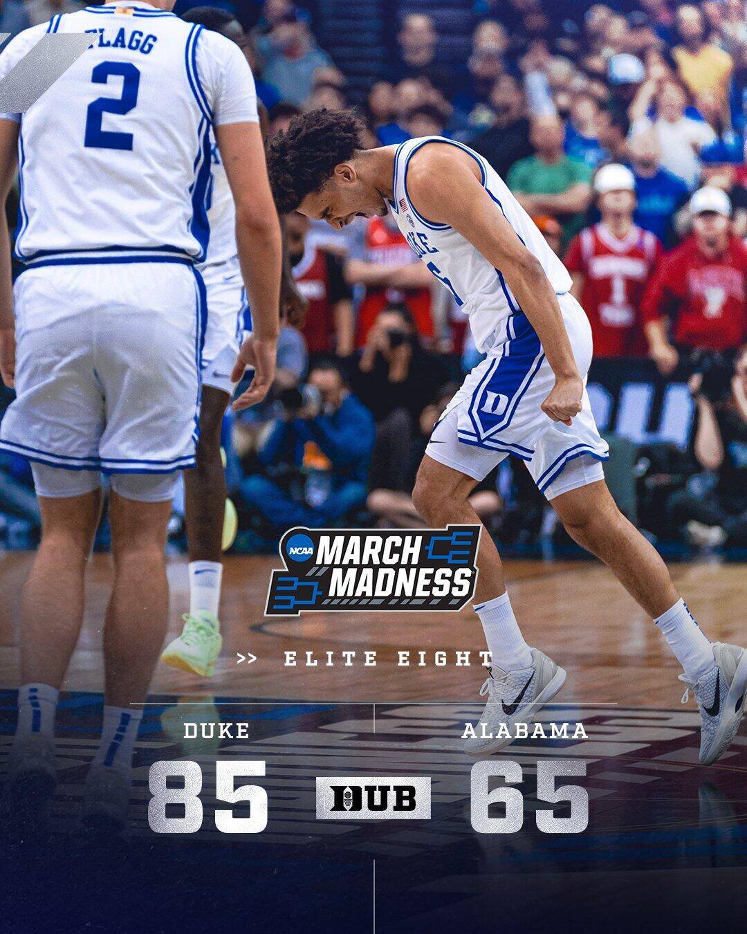 03月30日讯 NCAA“疯三”全国锦标赛八进四,东区1号种子杜克大学85-65大胜2号种子阿拉巴马大学。