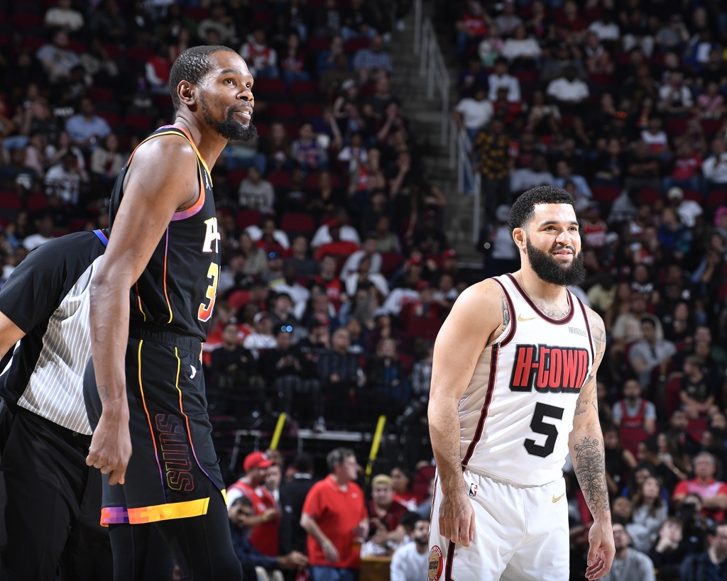 “没有人会排除这种可能性,但就太阳队的需求、对他们来说合理的筹码以及火箭队愿意放弃的资源而言,是否构成等价交换这一点值得怀疑。无论是年轻球员还是选秀权,以及为了接近杜兰特要匹配明年5000多万美元的薪资,这些都值得怀疑。”