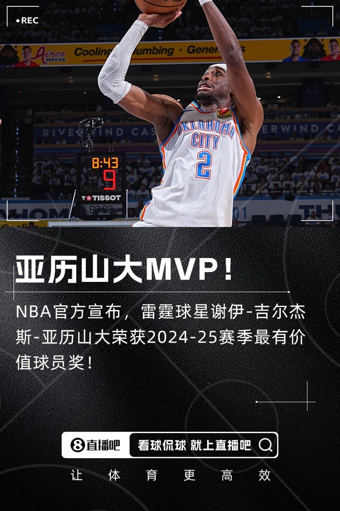 05月22日讯 NBA官方宣布,雷霆球星亚历山大荣获本赛季MVP!