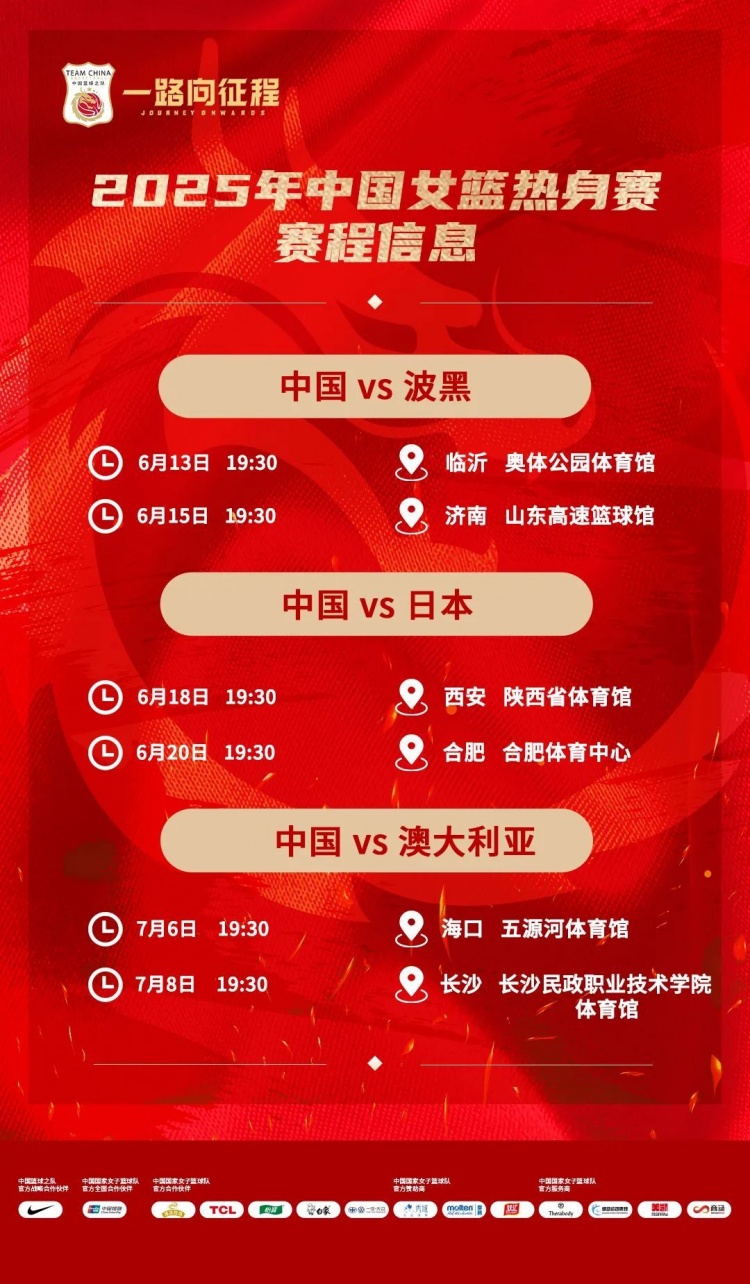 6月13日至7月8日,我们将与波黑女篮、日本女篮、澳大利亚女篮共进行6场热身赛:一是检验近期训练成果;二是系统磨合不同阵容配置;三是检验队员的竞技状态。我们期待通过即将到来的热身赛,检验前期的训练成果,并不断进行调整,以昂扬的精神面貌迎接亚洲杯的挑战。