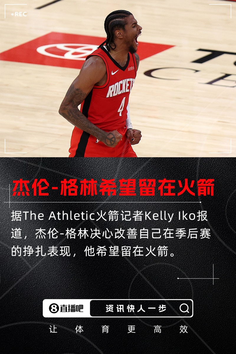 06月15日讯 据供职于The Athletic的火箭记者Kelly Iko报道,联盟数位消息人士透露,火箭主力后卫杰伦-格林的名字一直与杜兰特以及其他球星的交易传闻联系在一块,他决心改善自己在季后赛中的挣扎表现,并希望留在休斯敦(火箭)。