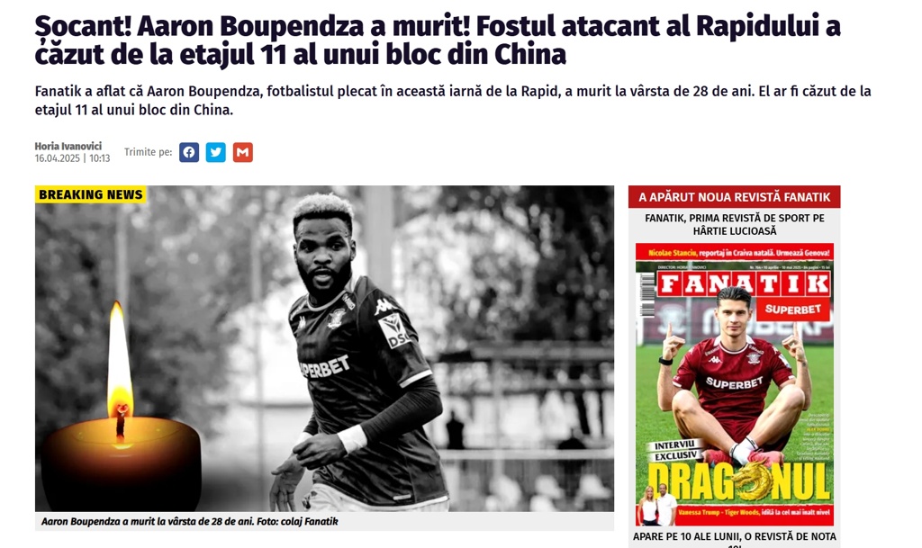 加蓬足协发布讣告,效力于中超浙江队的加蓬国家队前锋布彭扎,因在中国期间从公寓11楼坠落不幸离世,年仅28岁。而今晚7点中超浙江队vs梅州客家的比赛照常进行,并未延期。比赛开始前,浙江队球迷发出巨大嘘声,并在第9分钟高喊布彭扎的名字。
