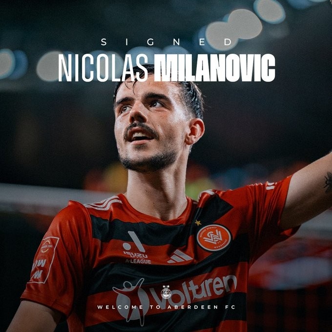 阿伯丁官方表示,此前俱乐部与澳超球队西悉尼漫步者达成了一项未披露转会费的协议,米兰诺维奇也与球队签署一份预协议,这位23岁球员将于今夏正式加盟,签订一份为期三年的合同,并附带俱乐部续约选项。