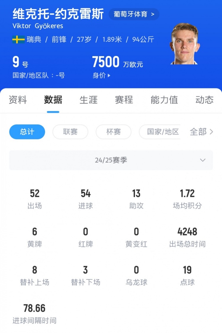 约克雷斯在葡体效力的两年里,他出场102次打进97球,瑞典前锋转战更大的联赛几乎没有悬念,但很难确定约克雷斯是否能将如此高的进球效率复制到英超这样的赛场。